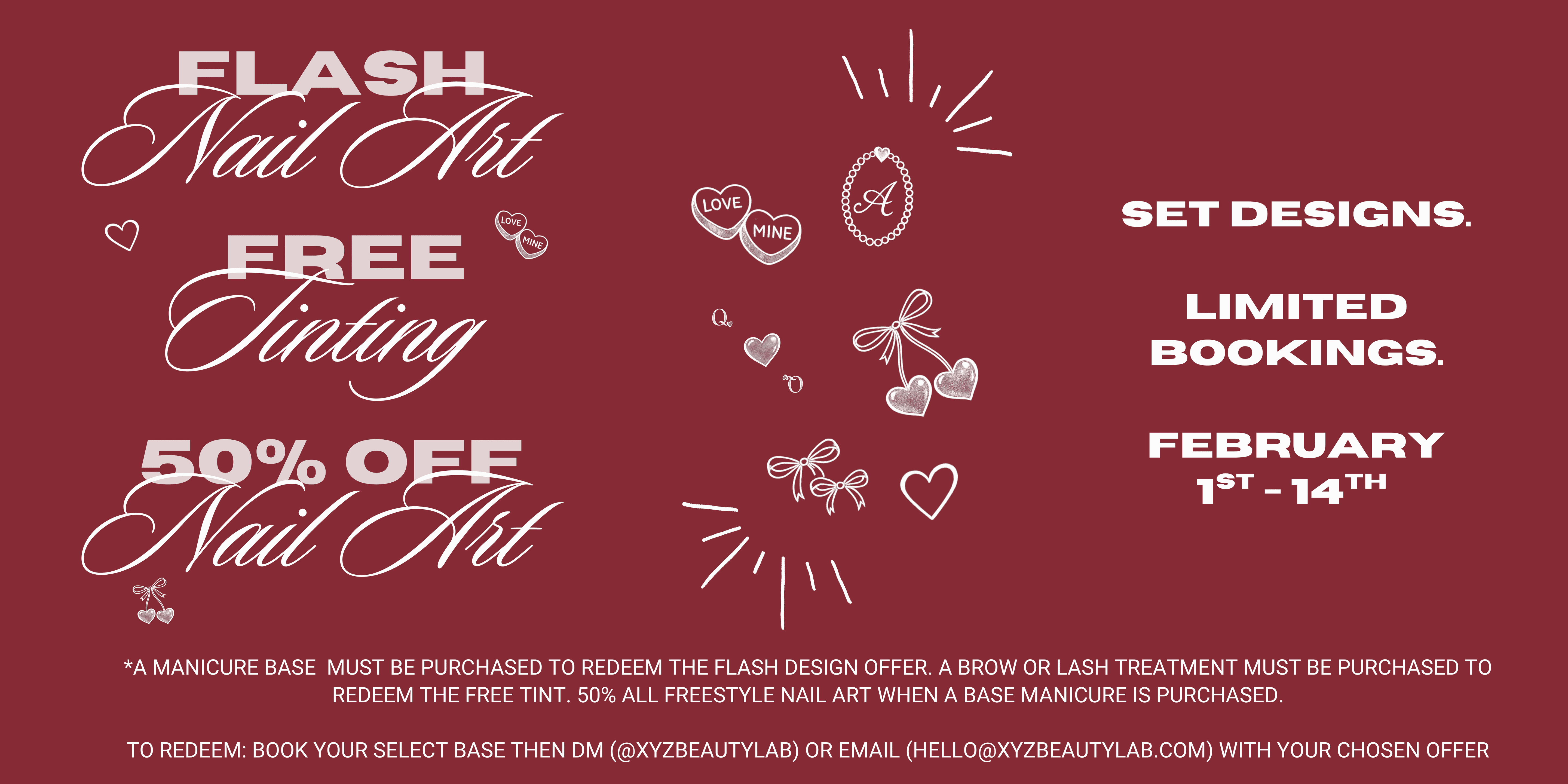 Nails, tooth gems, lashes & brows.